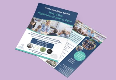 Flyers and brochures tell the public about your school, promoting enrolments and events. Print professionally, print at school or use online.