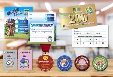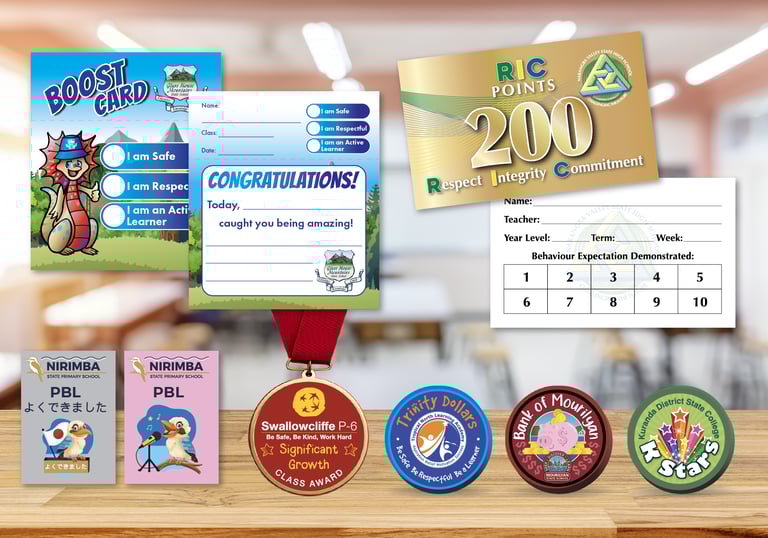 Reward positive behaviour with school reward cards, PBL tokens and school medals/trophies.