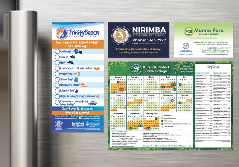 School absence numbers, ready for school checklist and calendars - fridge magnets are a great practical inclusion in enrolment packs.